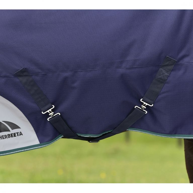 Secure fit: Delivered via adjustable and removable leg straps, as well as a full wrap tail flap with new 3-piece design, which wraps around the horse's quarters for ultimate weather protection.